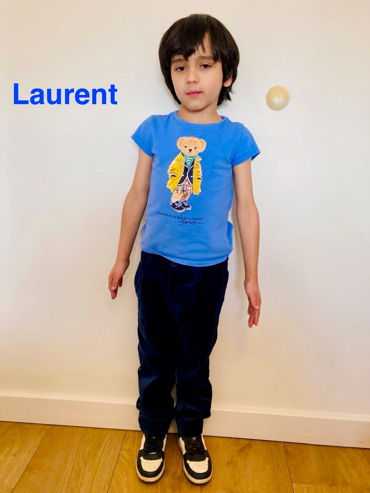 - The above are Daniel’s body measurements. Laurent body measurement are below: Hair colour: brunette Eye colour: Brown Height: 110 cm Clothes size: 4-6 Waist: 51cm Chest: 58.5 cm Hips: 58.5 cm Inside leg: 49.5 cm Shoe size: 30 EU or 11.5UK